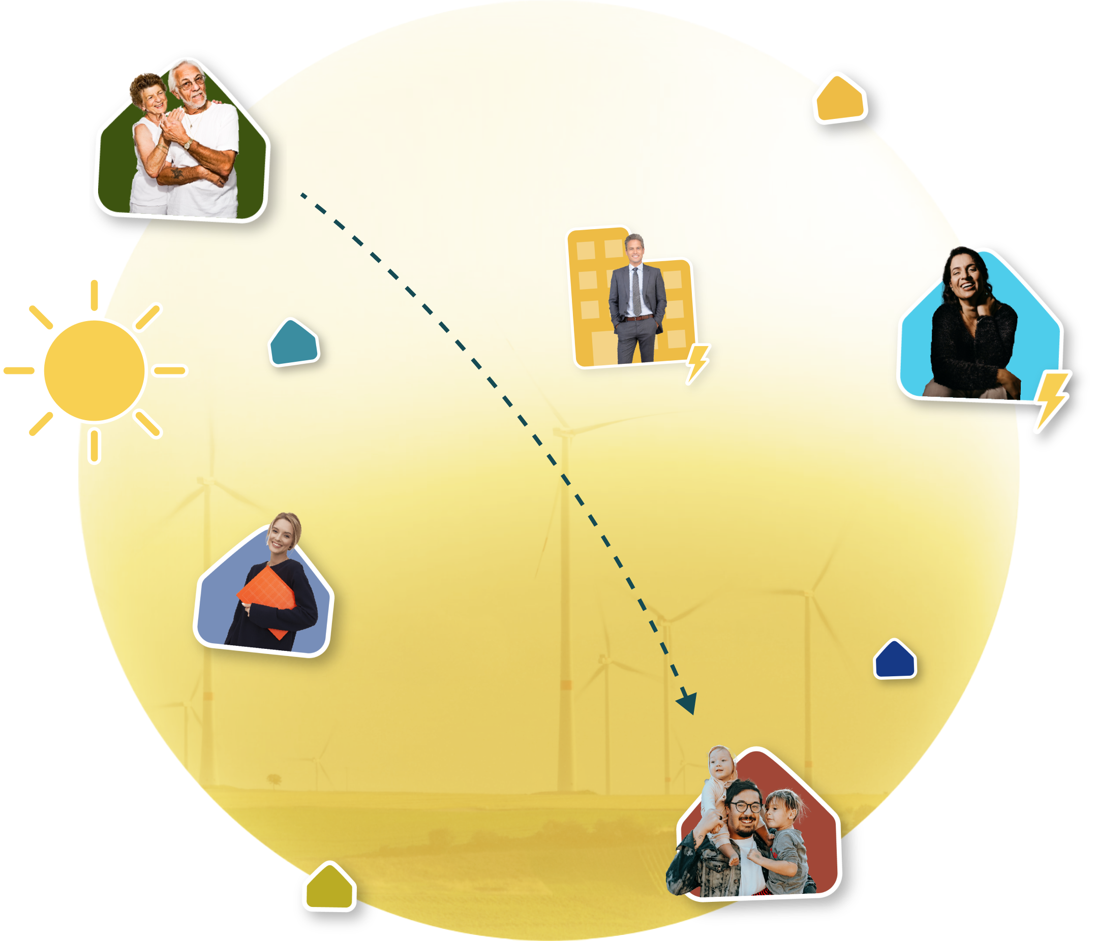 Seien Sie Teil einer Gemeinschaft in der erneuerbarer Strom sinnvoll für alle verteilt wird.